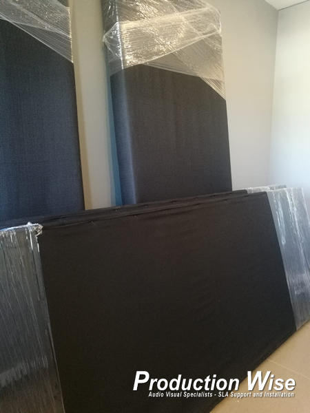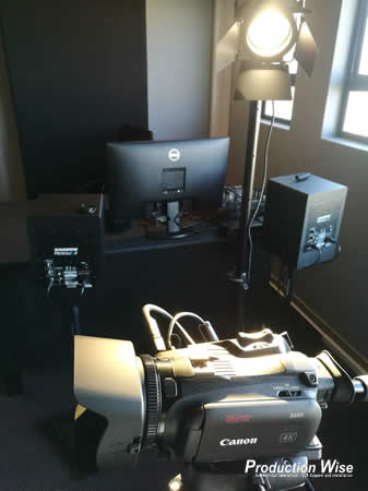 We ended up supplying six custom made, sound absorption panels (3 “Clouds” or, overhead units and 3 wall mounted) a 4 Input HDMI, Matrix Switcher from Black Magic couped with some great 4K cameras from Canon, a great audio mixer and AD converter from Allen&Heath and an excellent set of 4 affordable, variable white lighting from IMix. All other amenities were also either fabricated or supplied and installed by us – from the chairs and large custom desks needed, to the complete screen and computer, storage and editing system driving the software side of the studio.