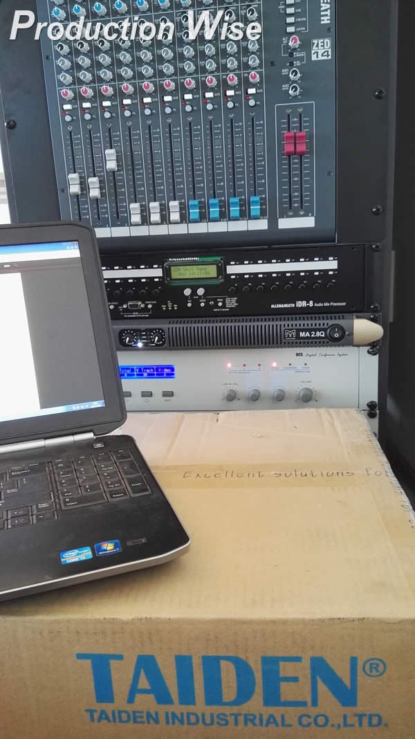 The conferencing system comprised Taiden HCS4100 flush-mount delegate units, totaling 60, and one tabletop chairman unit for the lectern, adjustable as needed. The Taiden system provided a perfect all-round solution for recording, discussion, and general conferencing. Switching between its internal modes allowed for a seamless transition from a loosely controlled discussion to a strictly time-allocated address system. With the clever Martin Audio O-Line setup isolating sound in hard-to-avoid areas and the high-quality Taiden directional microphones with individual gain control, the likelihood of feedback occurring was minimal, both now and in the future.